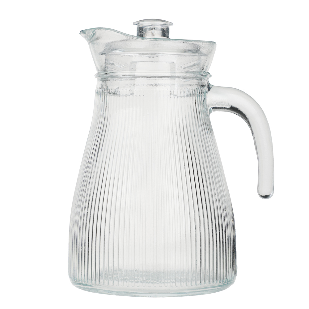 Кувшин 1,2л стекло с пластиковой крышкой, рифленый