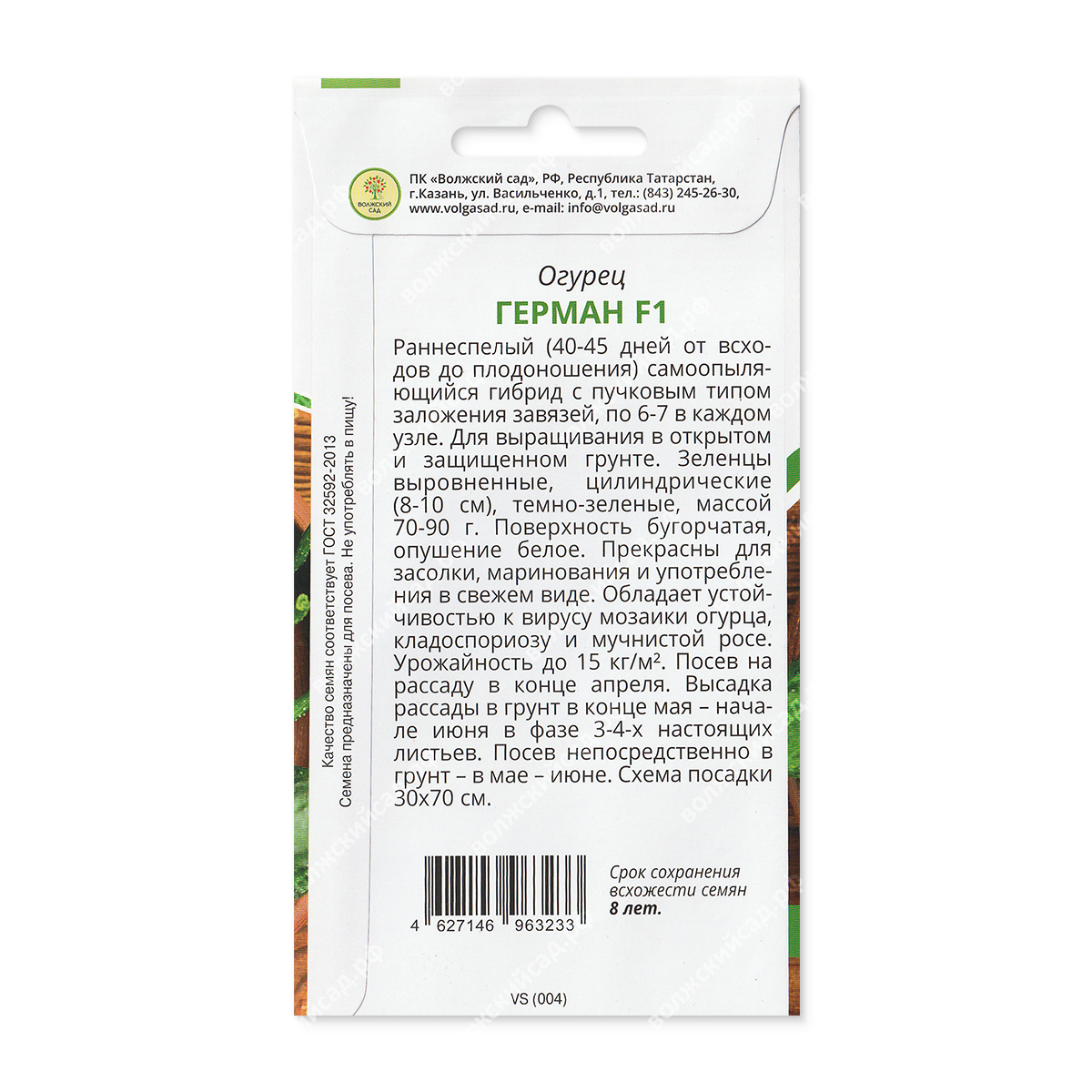 Огурец Герман – среднеспелый, партенокарпический гибрид. От всходов до начала плодоношения 40-43 дня. Подходит для открытого грунта, для временного плёночного укрытия, для плёночных теплиц.