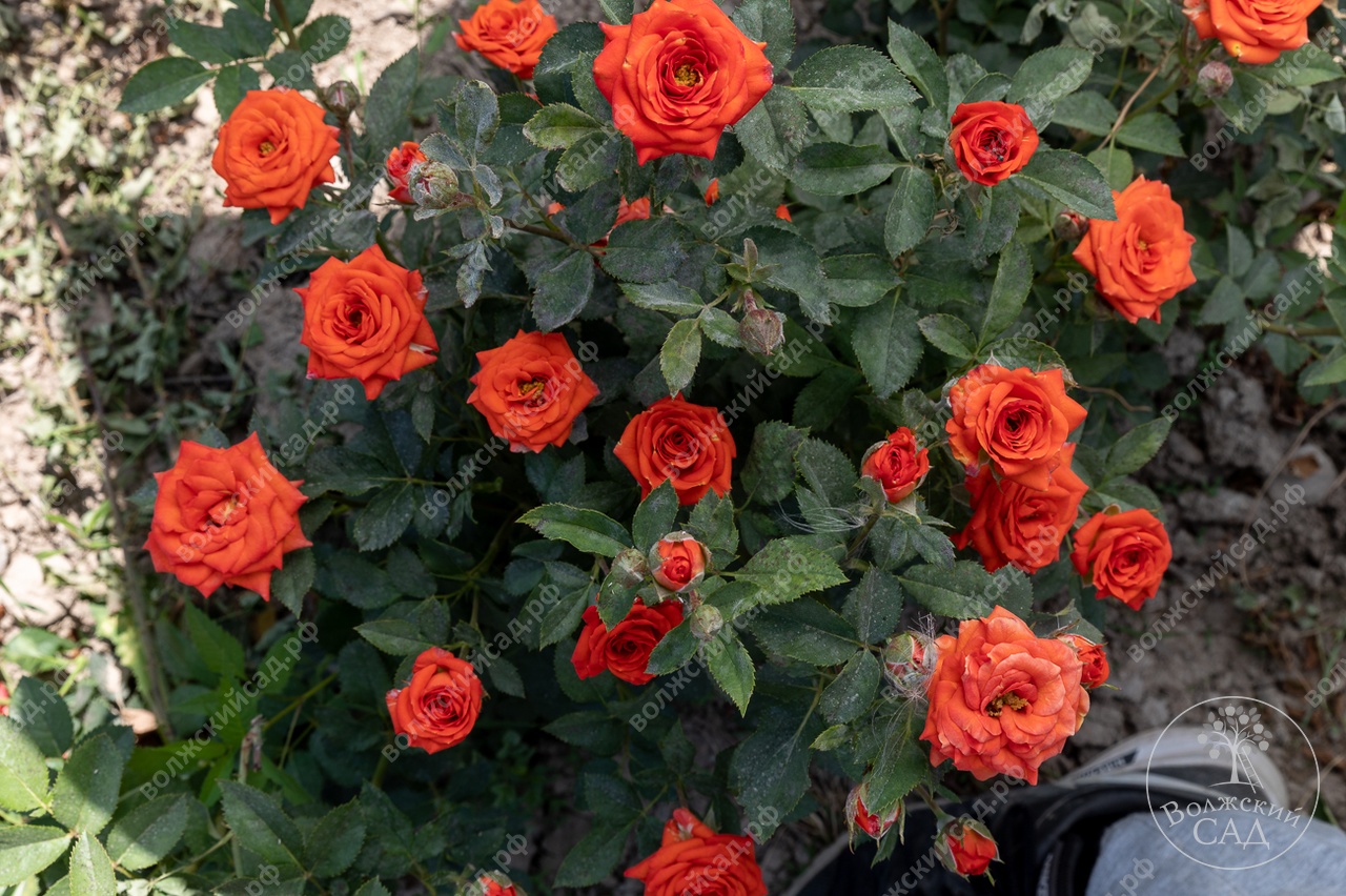 Цветки оранжево-алые, махровые, хорошо держат окраску, долго не увядают. Цветки появляются в кистях по 3-15 шт, они чашевидные, диаметром 3–5 см, обладают очень легким ароматом и устойчиыв как к солнцу, так и к дождю. Цветение в соцветиях, обильное, повторное, продолжительное. Куст высотой 45 см, аккуратный, густой, подушковидный. Аромат легкий, едва ощутимый.